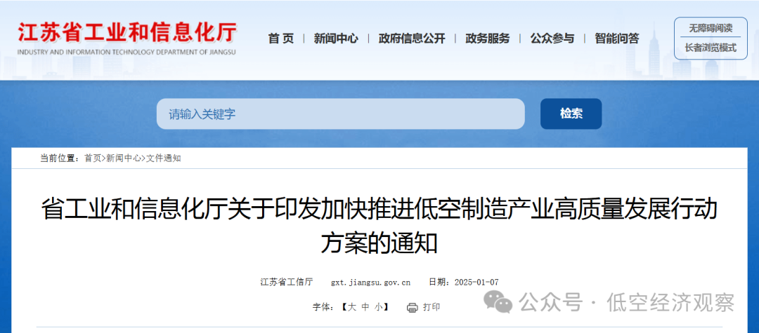 信息来源:江苏省工信厅网站,「低空经济观察」编辑整理。