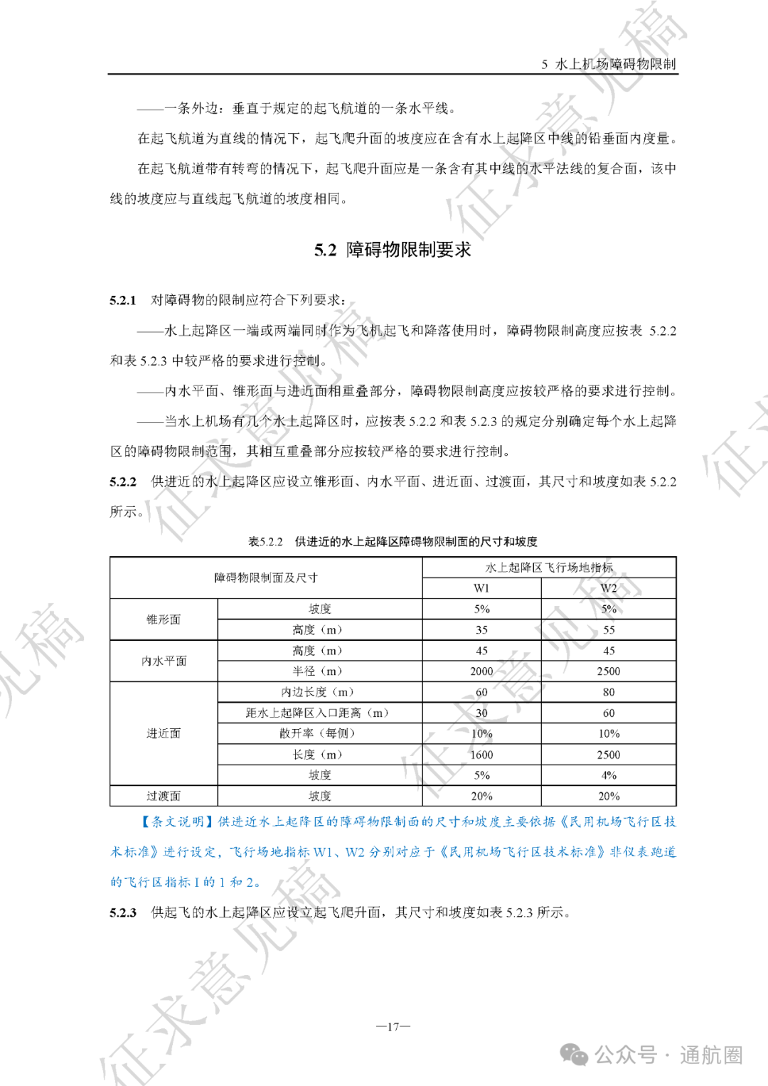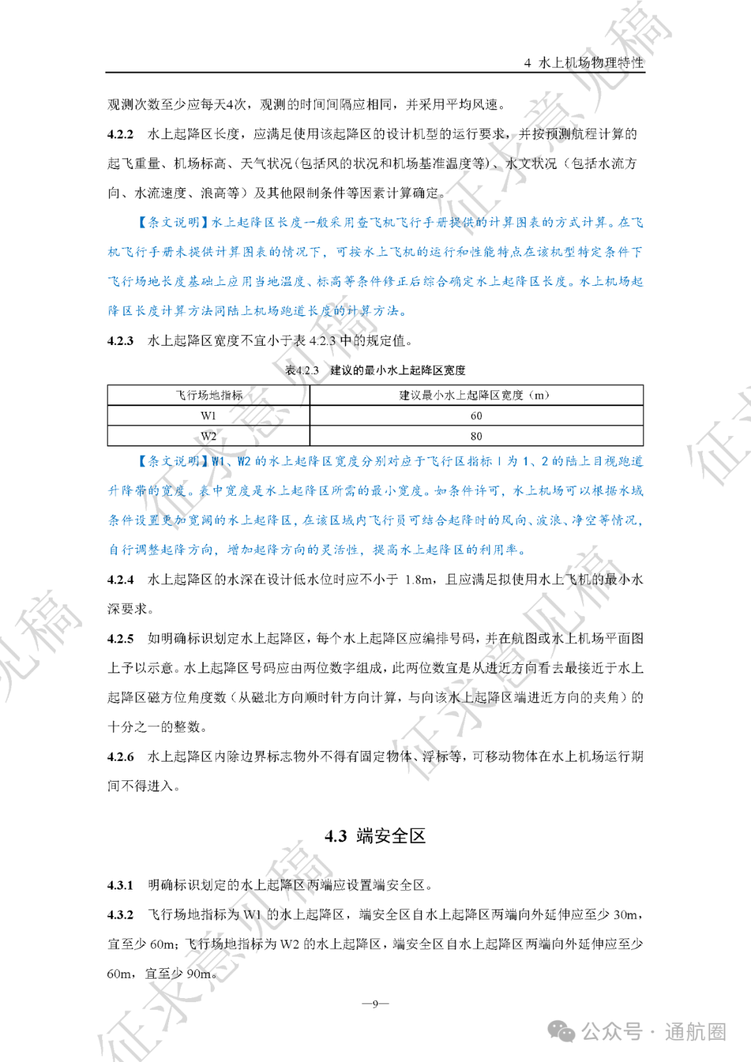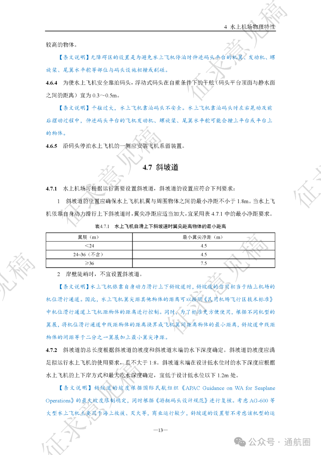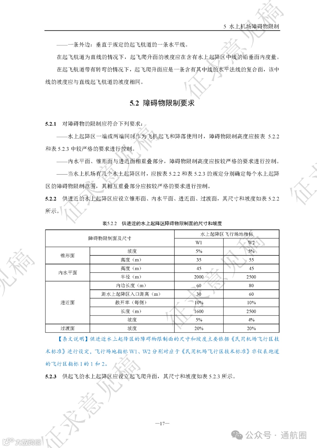 根据征求意见稿,水上机场飞行场地指标按拟使用该飞行场地的各类水上飞机中的 最大起飞全重划分为 W1、 W2级,最大起飞全重不足2730kg的为W1级。