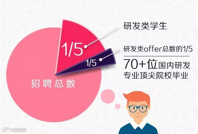 此外,今年还有一大亮点,研发类学生占据了招聘总数的近1/5,迎来了首个招聘大年。这其中,有70多位是研发大牛哦~~据说年薪都%^&%^%$$,你们懂得:)