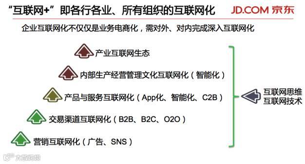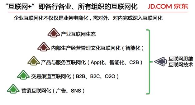 京东云互联网+战略将京东的核心能力与资源进行整合并对外开放,从根本上帮助客户实现互联网转型。从京东的全产业链能力的输出,到云计算大数据能力的共享,与合作伙伴结成深度合作关系纽带,共同打造和发展互联网企业生态。