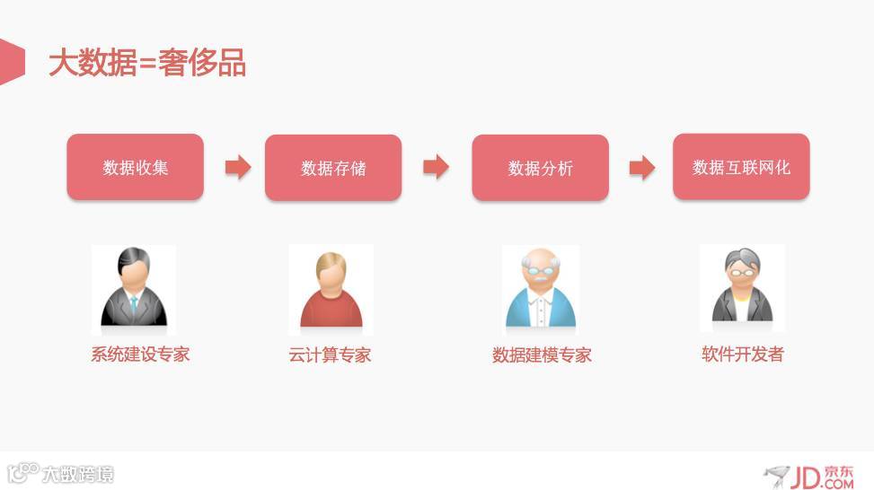 数据对每个企业来说非常重要,企业需要搜集和分析数据,并做出商业决策。但是企业去做数据分析的时候不知道该搜集哪些数据,也没有存储设备大数据分析平台,不知道如何分析,不知道如何用。表面上看离数据很近,其实离数据很远。所以对企业来说,大数据依然是一件奢侈品。