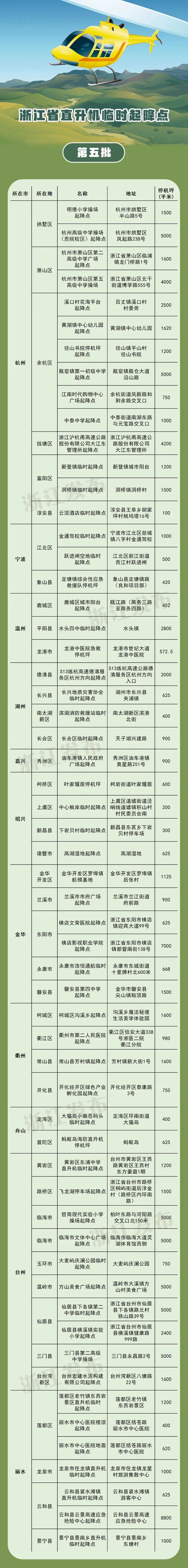 近日,省应急管理厅公布浙江省第五批直升机临时起降点,共58处临时起降点符合直升机应急救援起降条件,其中杭州14处。一起来看看都有哪些!