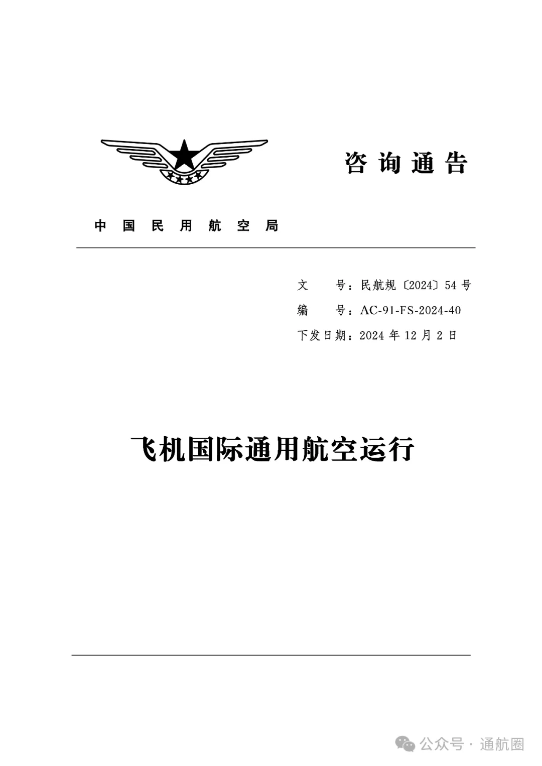 据通航圈自中国民航局获悉,民航局近日发布《直升机国际运行》《飞机国际通用航空运行》两部规范性文件(民航规〔2024〕53号、54 号),其中,《直升机国际运行》适用于使用在中华人民共和国进行国籍登记的直升机在境外实施国际商业航空运输和国际通用航空运行;《飞机国际通用航空运行》适用于使用在中华人民共和国进行国籍登记的飞机实施国际通用航空运行。