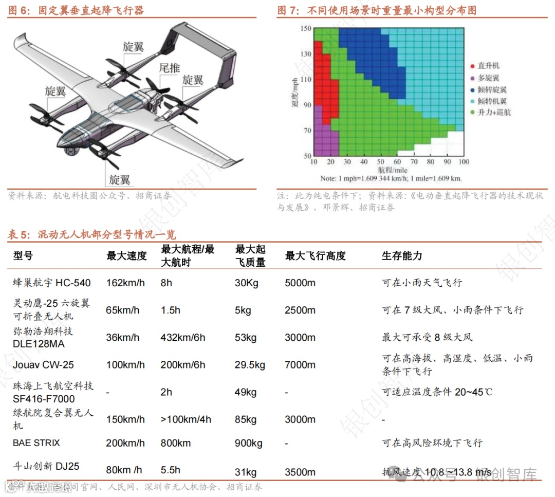 混动技术有望与纯电长期并存。参考新能源车产业,纯电和混动长期并存,23年纯电和混动占比为 7:3,24 年 Q1 占比为 6:4。我们认为,在动力电池性能达到理想状态之前,混动技术将成为飞行器实现长续航里程的优选方案,未来混动和纯电路线将长期并存。
