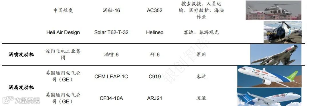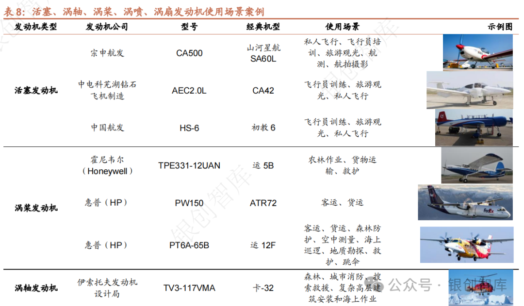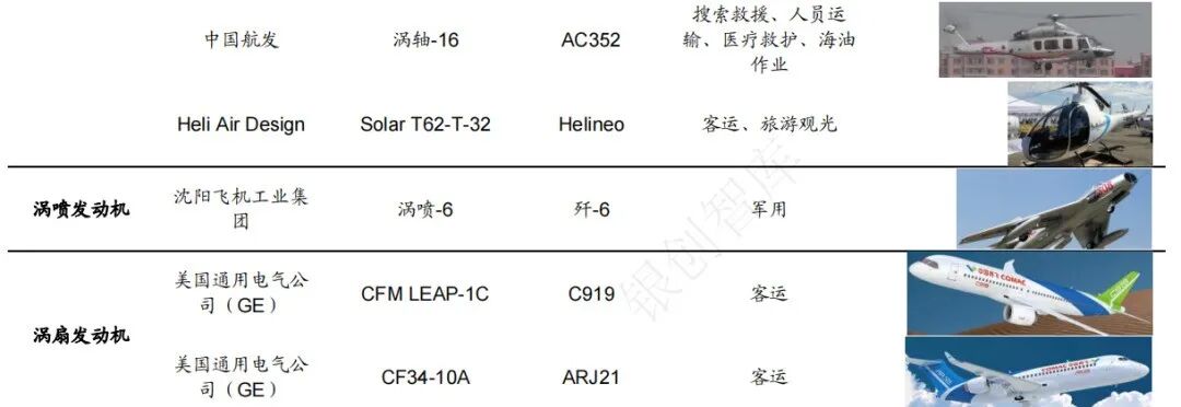 涡轮发动机分为 4 种基本类型,即涡轮螺旋桨发动机、涡轮轴发动机、涡轮喷气发动机和涡轮风扇发动机,分别简称涡桨/涡轴/涡喷/涡扇发动机。上述发动机均包含压气机、燃烧室以及驱动压气机的燃气涡轮三大部件,统称为航空燃气涡轮发动机。其中,涡轴/涡桨在低空领域有较好的使用场景,前者多用于直升机,后者多用于小型通航飞机;涡扇/涡喷主要用于民航及军用场景,详见附录。