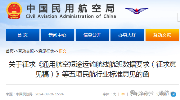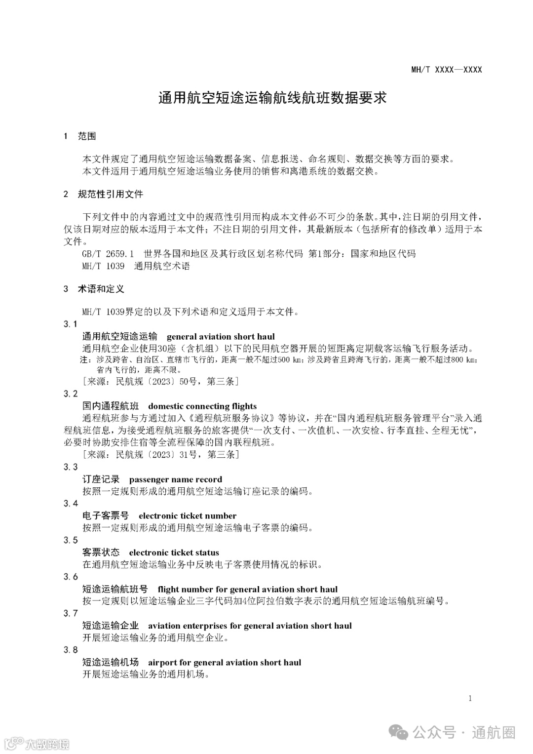 以下为《通用航空短途运输航线航班数据要求(征求意见稿)》全文: