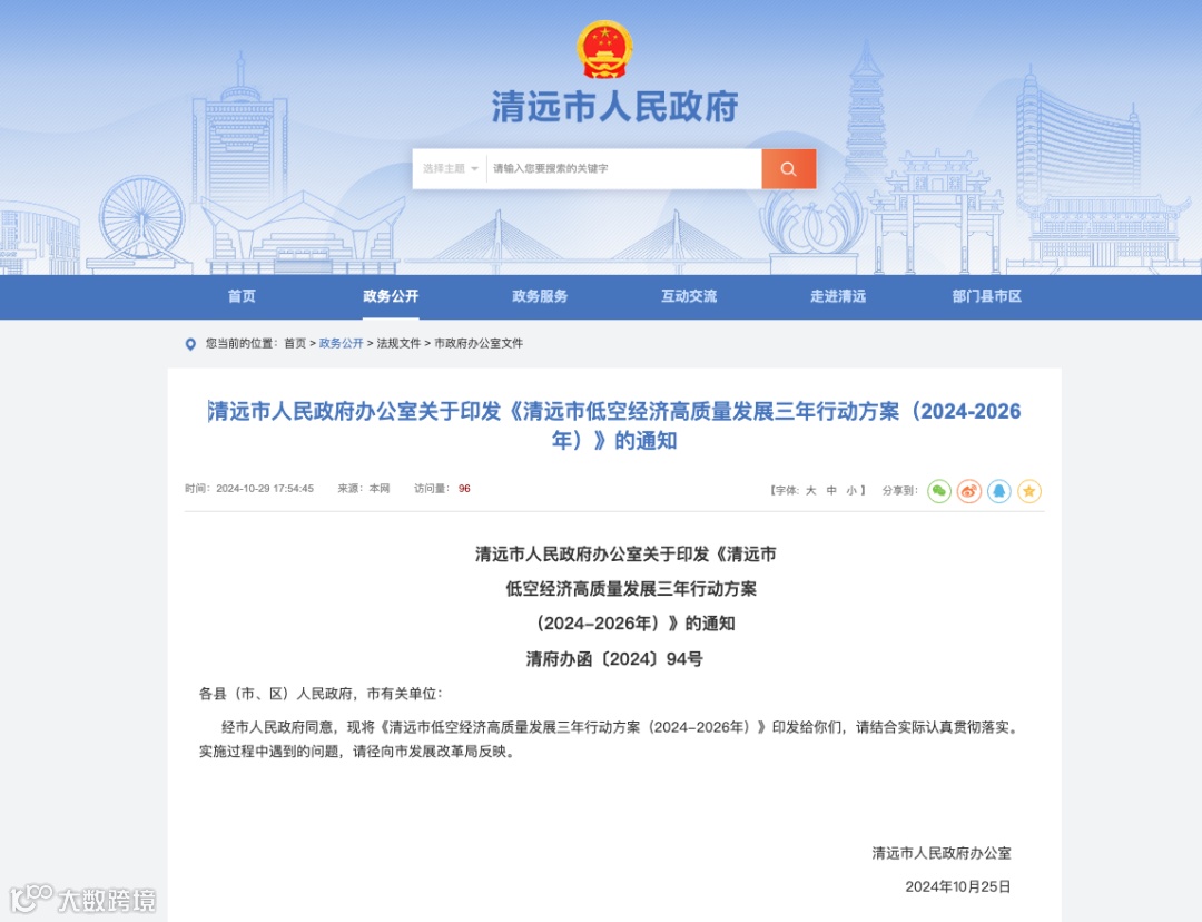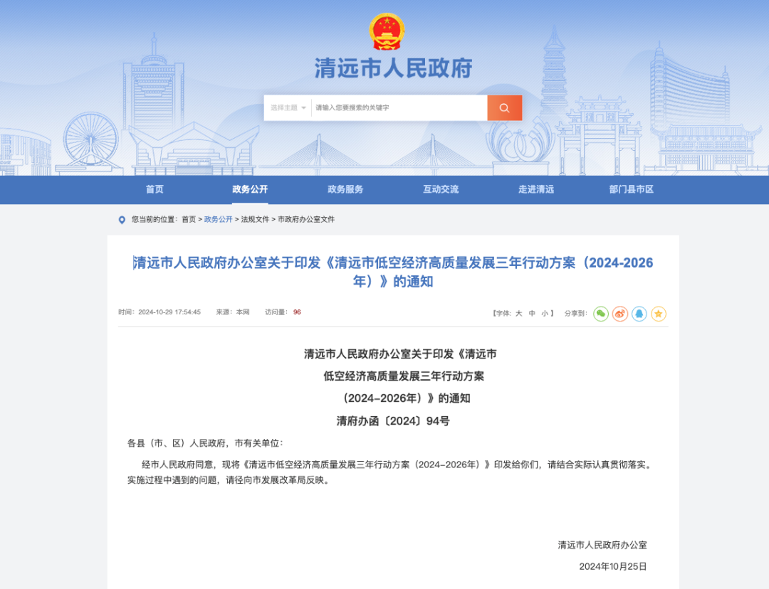 清远市低空经济高质量发展三年行动方案(2024—2026年)