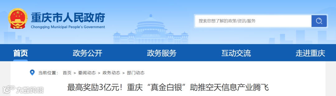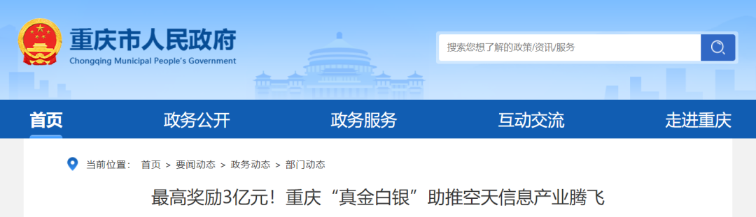 《重庆市支持空天信息应用和产业发展若干政策措施》近日印发,从建设基础设施、开展应用示范、科技创新攻关、引强培优筑链、培育产业生态五个方面,出台12条政策措施。其中,对符合条件的重大科技基础设施项目,将给予不超过3亿元的资金支持。《重庆市空天信息应用和产业发展专项资金管理办法》也同步出台,“真金白银”支持空天信息产业加快发展。