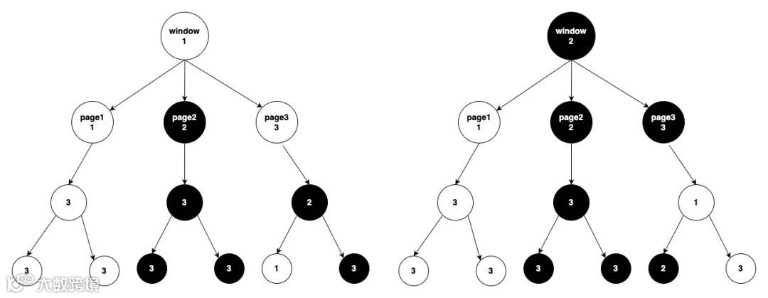 通过设置 theme-mode 属性,业务可以灵活的定制页面和视图的显示模式。既可实现整体视图跟随父节点的模式,也可针对特殊节点强制深色或者浅色显示,更大程度的满足业务在不同场景下的需求,具体效果可参考下图,其中数字表示当前节点对应的 theme-mode 的值。