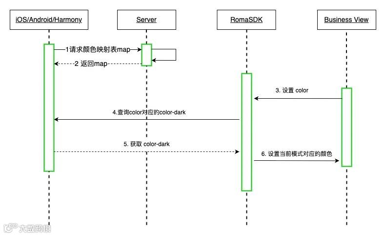 理想情况下业务可以做到零修改就能完成深色模式的适配,前提是App需要高度依赖一套完整的、规范的颜色映射表(普通模式下的颜色color要有对应的深色模式下的颜色值color-dark,没有则不映射),且设计师要按照映射表上的颜色来设计UI设计稿。这样在模式切换时就可以自动调整视图的颜色。