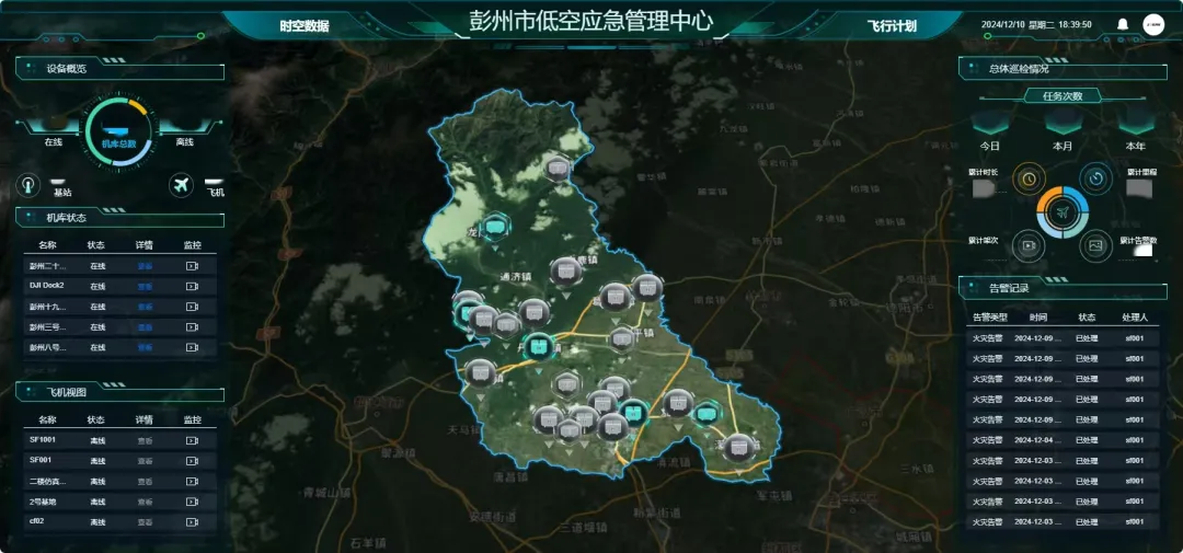 值得一提的是,为强化无人机在应用端的有效落地,做实产品与服务的双向转化。近期,成都的彭州市在国家级民用无人驾驶航空试验基地-天空之眼开展了多轮低空智慧政务集成系统实战应用场景测试,充分验证低空公共服务集成在应用端的可行性、可靠性。据介绍,“天空之眼低空智慧政务服务系统”包含无人机应用服务系统和智能调度系统,涵盖农业、林业、公安、环保、执法、水务、应急、消防、交通、城市管理等多个领域,实现一次飞行,多领域数据采集,目标问题智能分解传达,是一个集软件开发、AI算法叠加、时空大数据分析处理、空地一体智慧化综合调度、自组规划航线和飞行任务的高新技术成果项目。