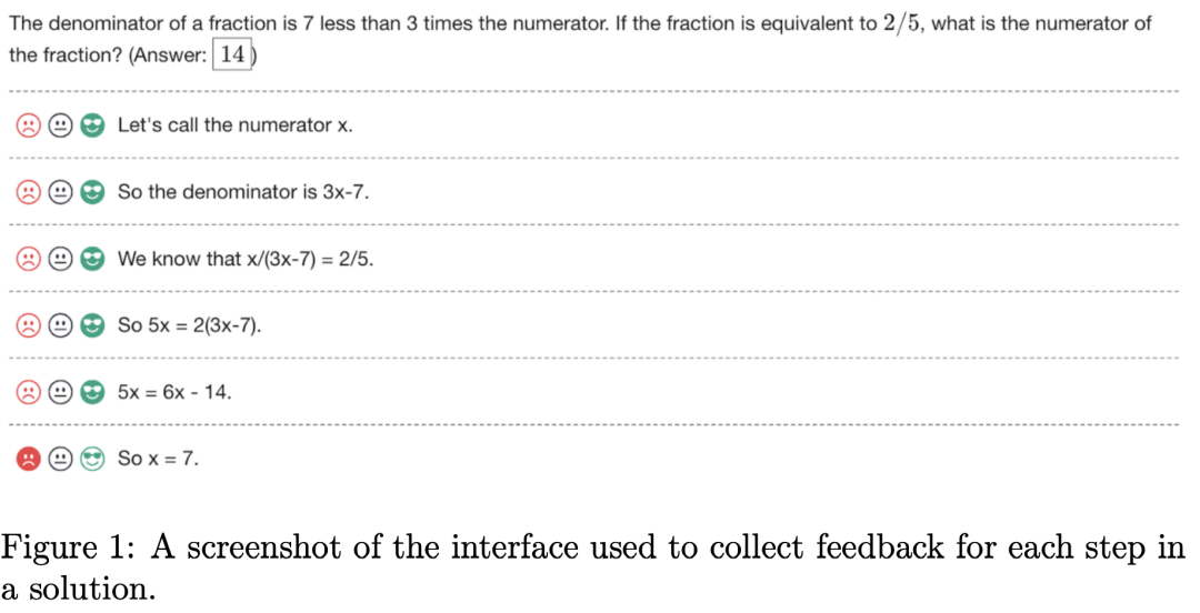 核心动机:传统的 Chain-of-Thought(CoT)训练主要依赖对最终答案的“结果监督”(Outcome Supervision),无法对每一步推理提供细粒度反馈;而本工作通过对推理过程中每一步的“有助/无助”人工标注,验证了过程监督在提升多步推理可靠性上的巨大潜力。