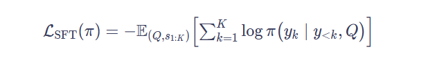策略网络:收集高性能模型生成的高质量 CoT 路径{(Q,s1:K)},对策略网络π做监督微调: