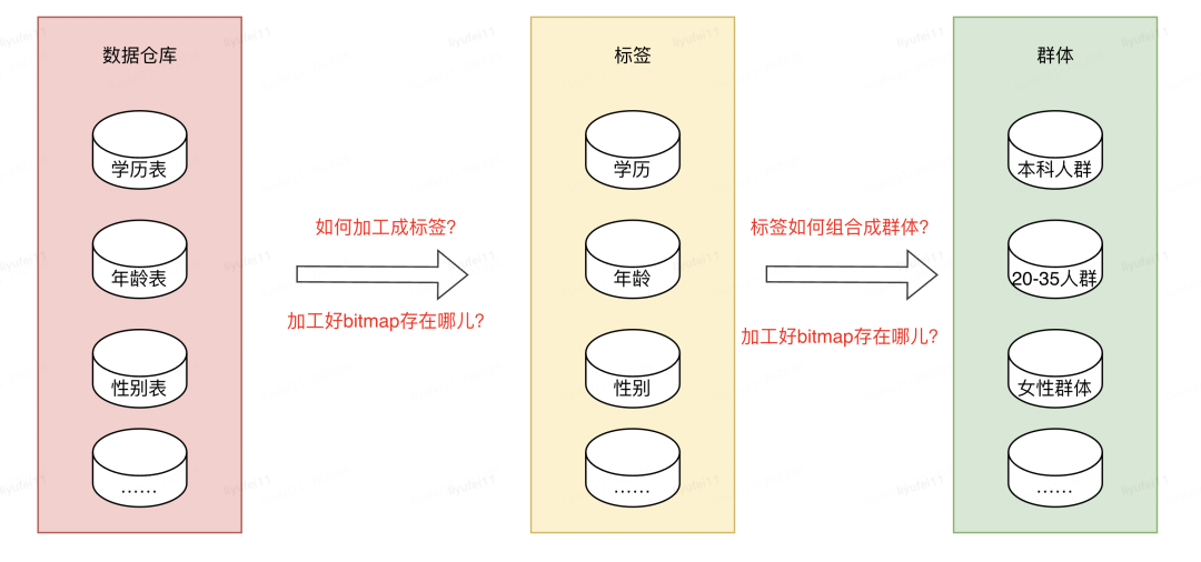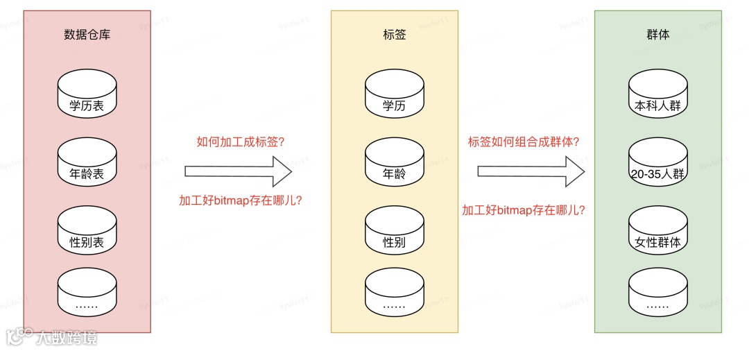 我们都知道数据仓库的概念,它的里边存储了我们所有的数据,其中就包含了标签或群体所依赖的数据,但是这些数据并不能直接拿来使用,想要变成业务需要的标签或群体数据,还需要进行加工。