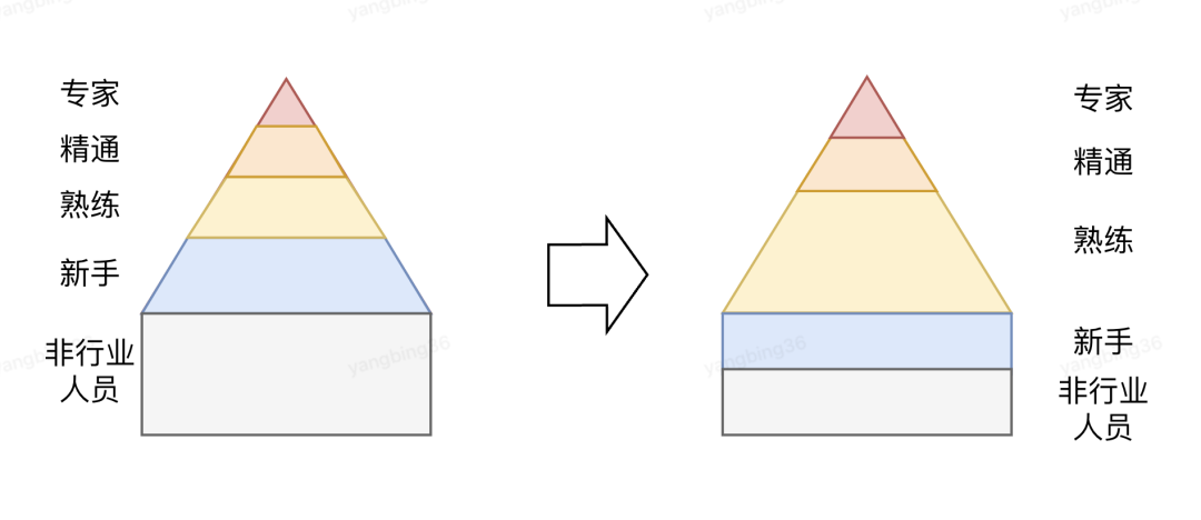同时,有了大模型的加持,可以让部分人进入到精通或者专家的行列中。