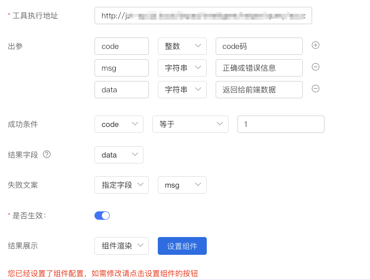 2.后端感知的信息:正常情况下,工具的执行其实是调用了后端的接口,那么就需要接口地址、接口入参、接口出参、成功条件等信息。其中接口的入参和模型感知信息中的参数是同一份数据。