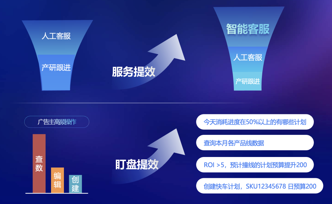 智能指令的使用将明显提升广告主盯盘效率,比如查询上个月各产品线的数据,在之前,用户需要跳转多个界面,进行多次操作才能完成,使用智能指令后,仅需一步即可。