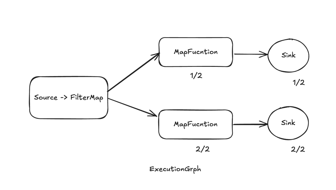 StreamExecutionEnvironment env = StreamExecutionEnvironment.getExecutionEnvironment();DataStream dataStream = env.addSource(new FlinkKafkaConsumer("topic"));DataStream filteredStream = dataStream.filter(new FilterFunction() {@Overridepublic boolean filter(Object value) throws Exception {return true;}});DataStream mapedStream = filteredStream.map(new MapFunction() {@Overridepublic Object map(Object value) throws Exception {return value;}});mapedStream.addSink(new DiscardingSink());env.execute("test-job");