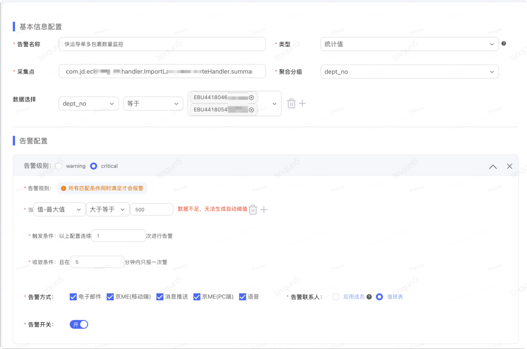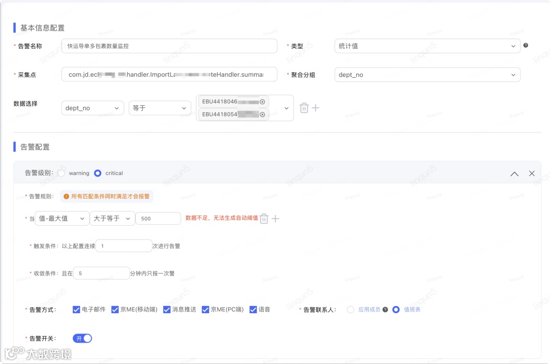 告警规则配置: