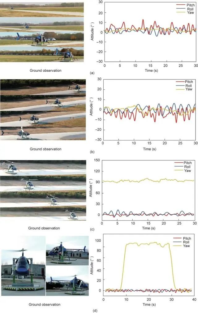 研究团队还构建了一个支持不同飞行模式和功能集成的地面站系统。最终,他们设计并制造了一个直升机驾驶机器人原型,并将其安装在直升机上进行了飞行测试。测试结果显示,该机器人能够独立完成前飞、后飞、侧飞和转弯飞行,验证了其有效性。
