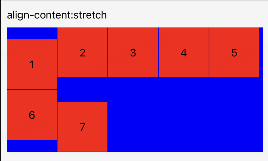 <div style="height: 200px;flex-direction: row; justify-content: flex-start; align-items: flex-start;flex-wrap: wrap;align-content: stretch;"><text class="item" style="align-self: flex-end;">1</text><text class="item">2</text><text class="item">3</text><text class="item">4</text><text class="item">5</text><text class="item">6</text><text class="item" style="align-self: flex-end;">7</text></div>