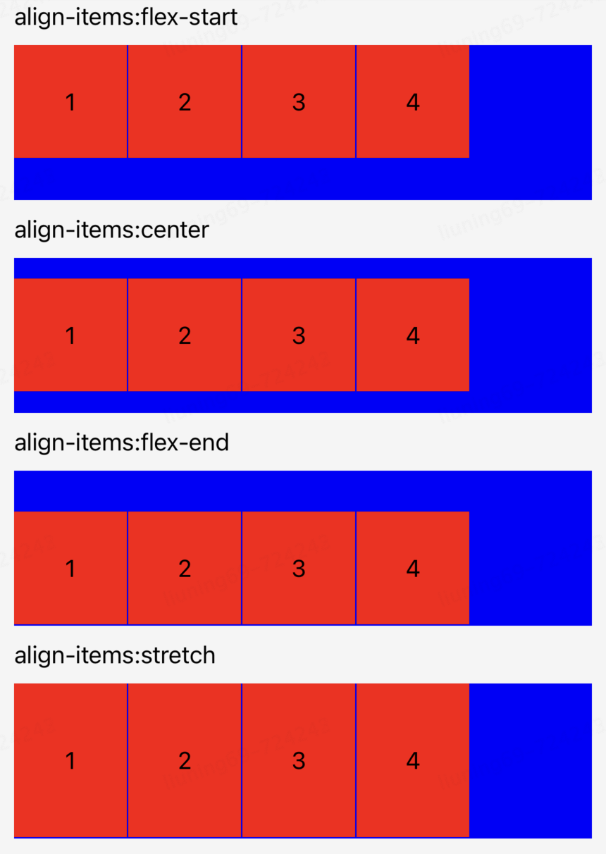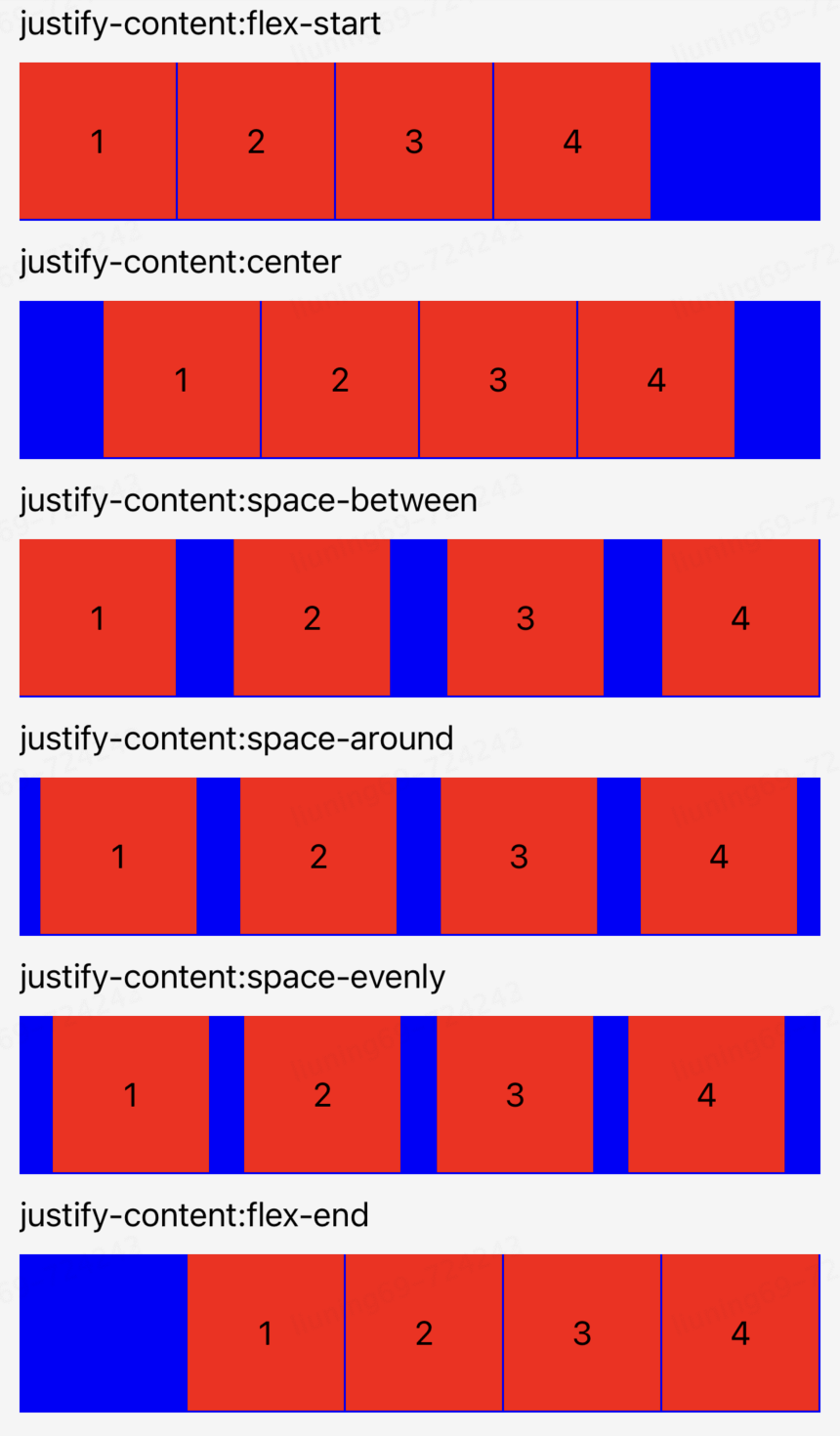 定义item在主轴上的对齐方式,默认值是 flex-start 。