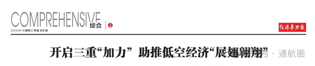 9月18日,新华社旗下《经济参考报》发布文章《开启三重“加力” 助推低空经济“展翅翱翔”》聚焦低空经济发展。其中提到,针对我国通航基础设施薄弱、软硬件技术瓶颈突破需假以时日、飞行时间占比低等状况,可策略性扶持市场主体拓展应急、医疗、文旅等应用场景做大市场“蛋糕”、做大产业“体量”;而在无人机领域,则应战略性重点扶持发展,包括构建与低空经济产业发展相适应的金融保险、信息服务、应用保障等配套产业,还要运用好“有形之手”辅助市场机制,促进低空经济加速商业化、产业化,把无人机作为中国低空经济的主导产业优先发展。