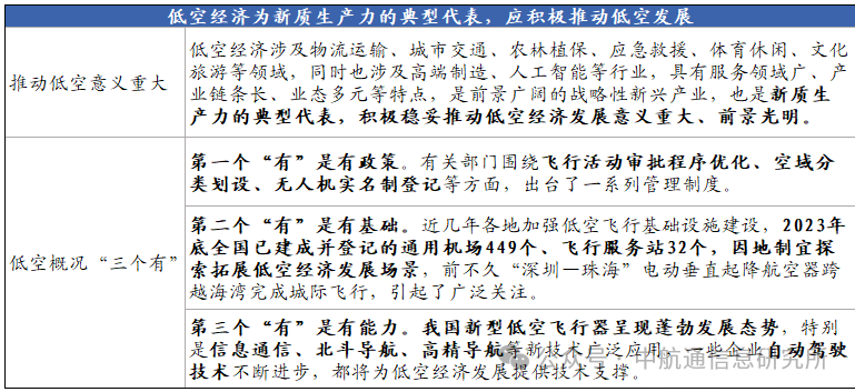 ➢ 2024年3月5日,政府工作报告中提出低空经济为新质生产力典型代表。