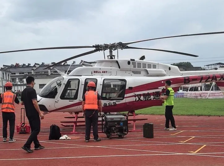 汛情就是命令,防汛就是责任。6月21日凌晨,安徽迎驾文旅集团下属企业安徽汉驰通用航空有限公司(以下简称“汉驰通航”)接到省应急管理厅紧急出动直升机支援黄山歙县救援的指令,汉驰通航充分发挥企业社会责任担当,在省应急管理厅统一调度下,立即启动预案;6月21日上午,公司总经理及机组人员共6人驾驶贝尔407直升机从霍山本场基地飞往黄山歙县,并在当日下午到达灾区开始投入救援任务。