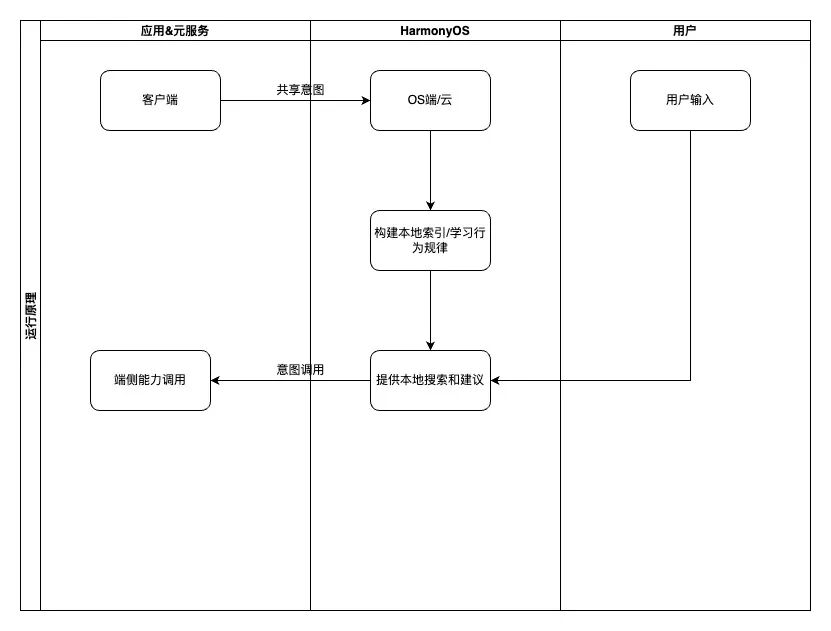 从上图可以看出应用或元服务可以主动向HarmonyOS共享意图,这些意图可以用于构建本地内容索引和学习用户的行为规律,从而支持本地搜索和主动建议功能。