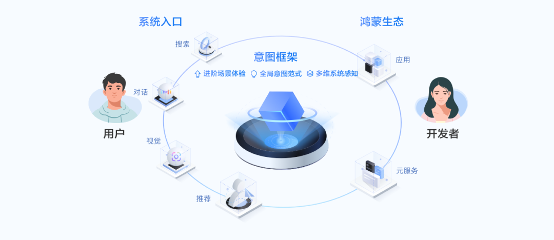 用户可以在系统入口输入信息,或者通过系统的主动推荐,系统会向应用或元服务发起意图调用。