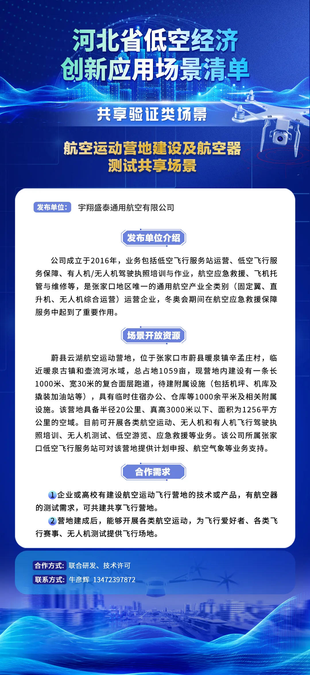 1.企业或高校有建设航空运动飞行营地的技术或产品,有航空器的测试需求,可共建共享飞行营地。