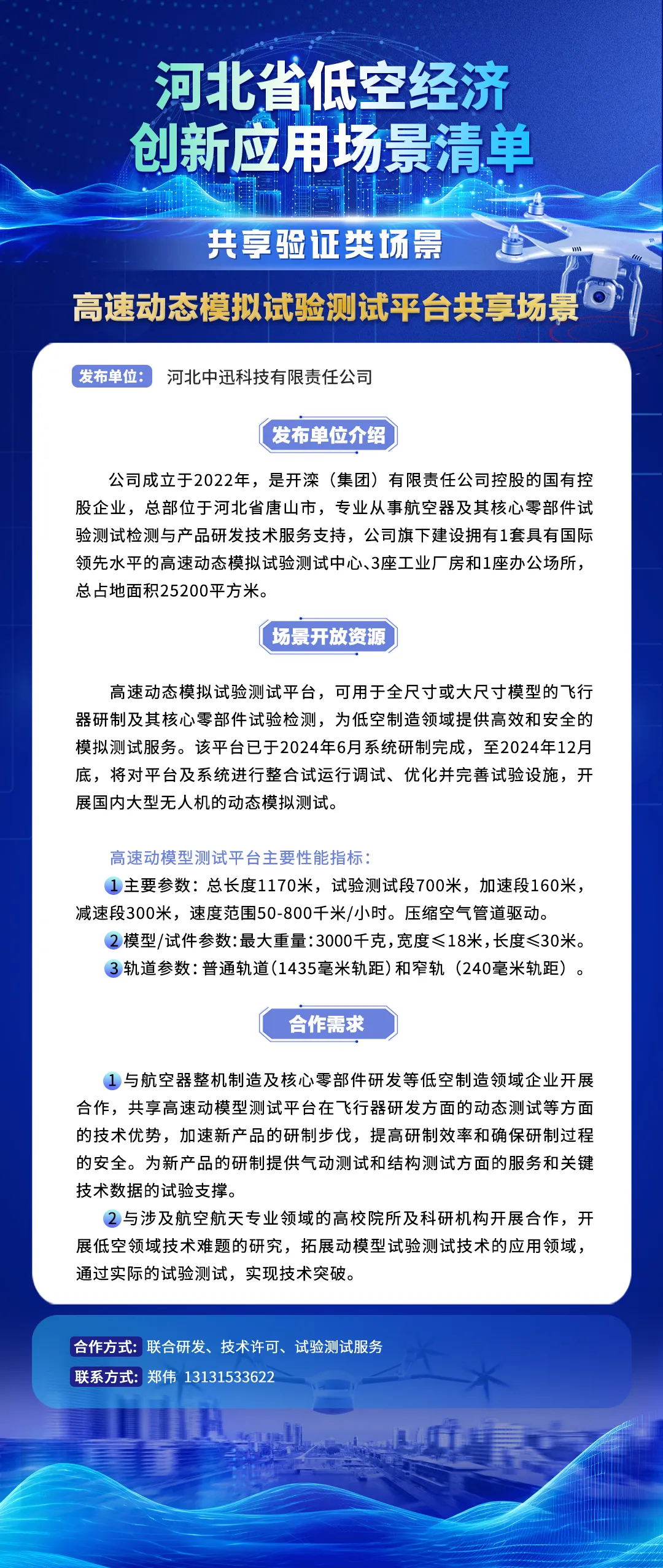 1.与航空器整机制造及核心零部件研发等低空制造领域企业开展合作,共享高速动模型测试平台在飞行器研发方面的动态测试等方面的技术优势,加速新产品的研制步伐,提高研制效率和确保研制过程的安全。为新产品的研制提供气动测试和结构测试方面的服务和关键技术数据的试验支撑。