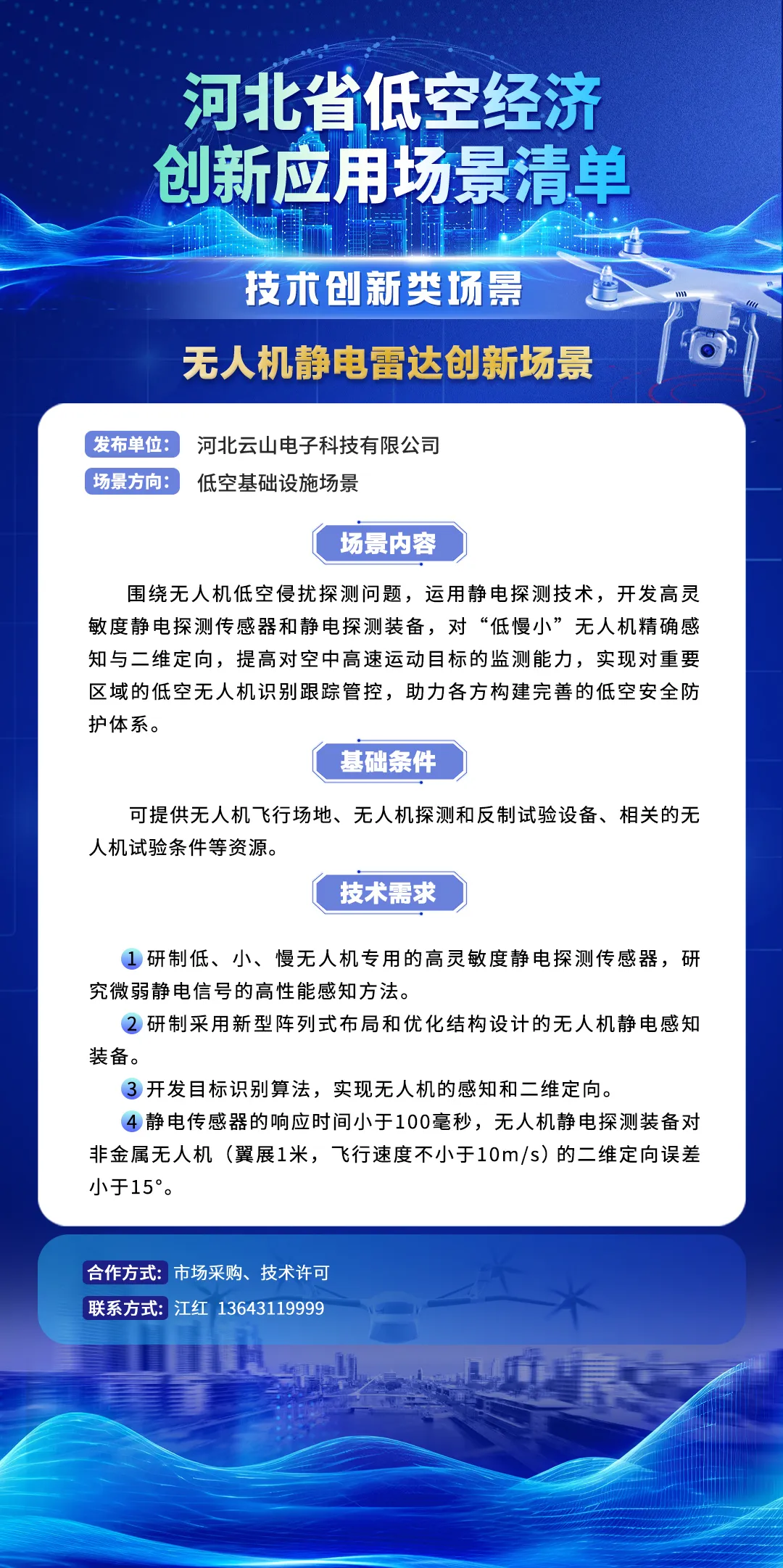围绕无人机低空侵扰探测问题,运用静电探测技术,开发高灵敏度静电探测传感器和静电探测装备,对“低慢小”无人机精确感知与二维定向,提高对空中高速运动目标的监测能力,实现对重要区域的低空无人机识别跟踪管控,助力各方构建完善的低空安全防护体系。