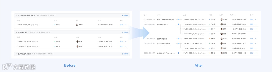 随着业务的不断下钻,不免会遇到一些复杂的使用场景,基础的交互和组件已不能有效的解决用户在使用中的问题。在一些既需要关注结构化的概览数据又要方便查看详细数据的场景中,以及在一些数据关联、任务串联等场景中,设计侧通过可视化、结构化等设计手段探索出了一些新的业务组件,解决了数据概览、数据关联不清晰等问题,为用户构建了直观、易懂的使用体验。