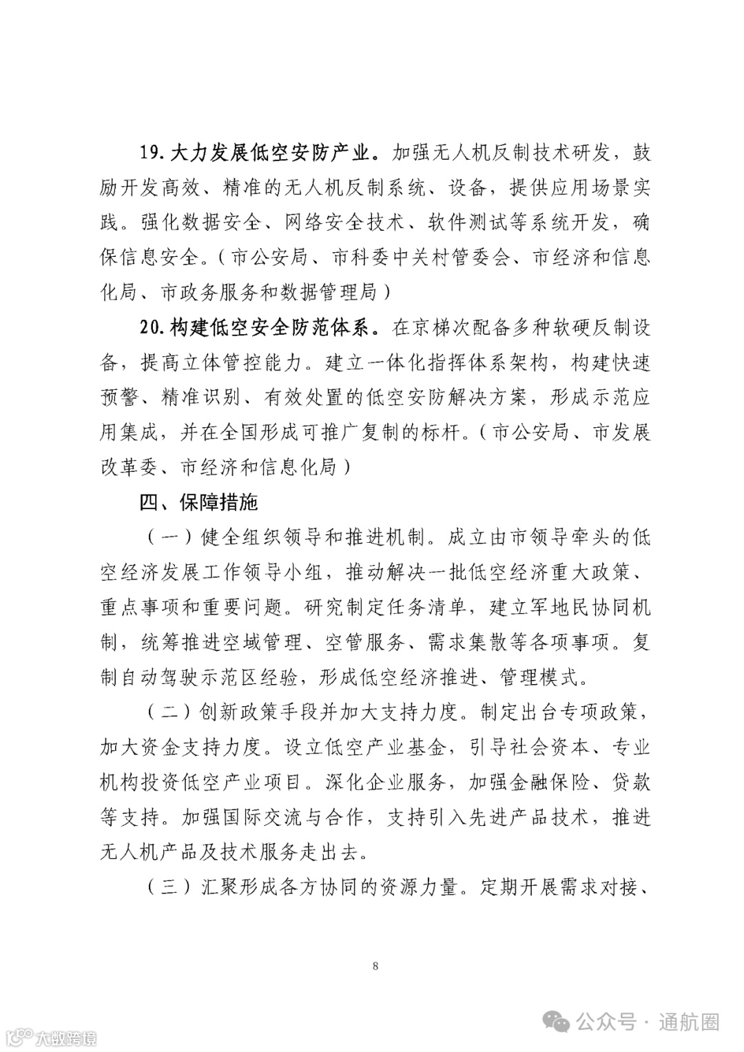 六是形成低空安防反制全国标杆,包括大力发展低空安防产业、构建低空安全防范体系。