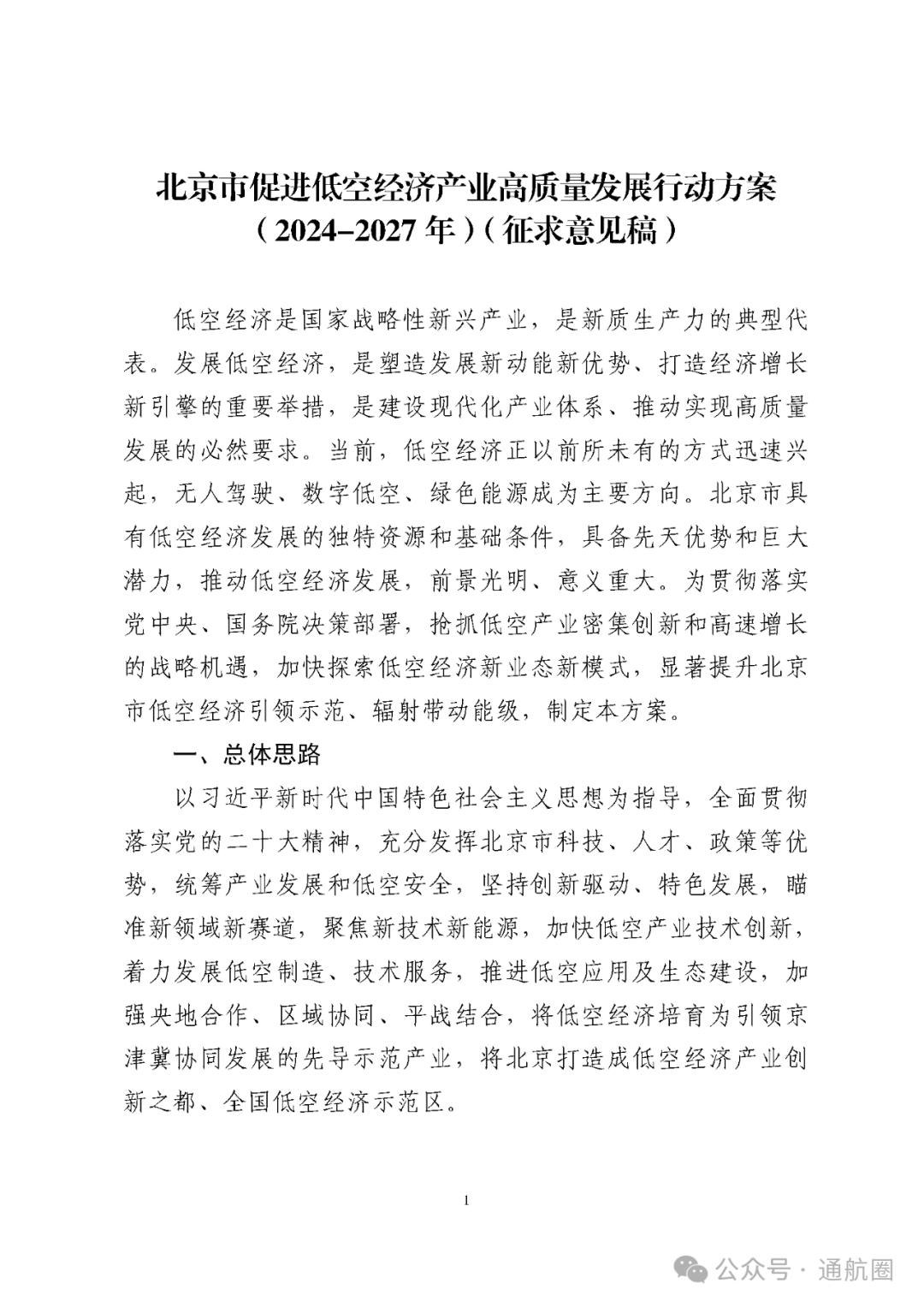 《北京市促进低空经济产业高质量发展行动方案(2024-2027年(征求意见稿)》提出了六大类20小类重点任务。