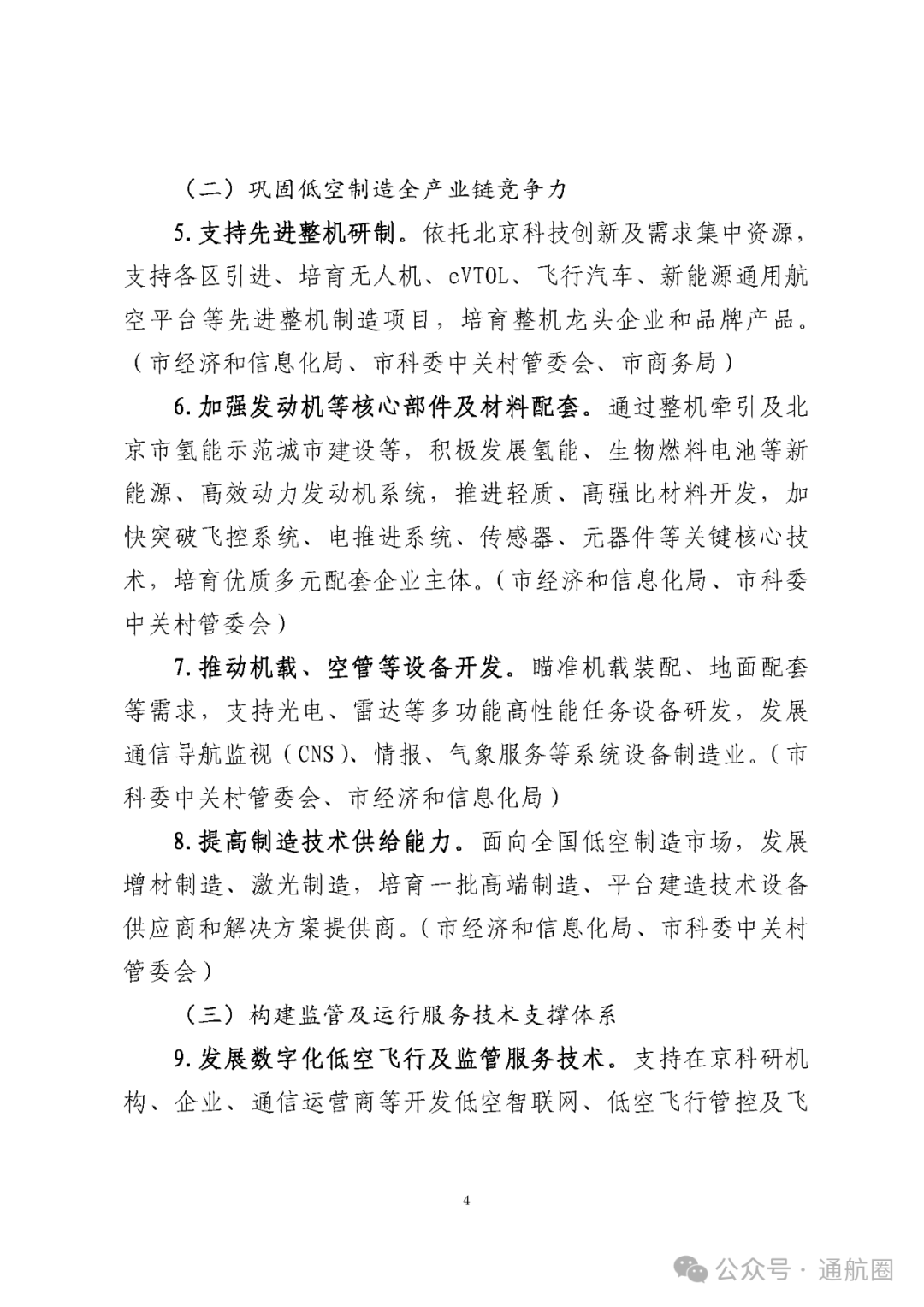 一是持续加强低空经济技术创新引领,包括建设高能级创新平台、促进科创成果转化落地、加快推进标准制定、发展研发设计产业。