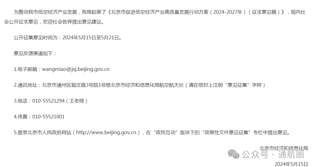 据起草说明介绍,低空经济是国家战略性新兴产业,是新质生产力的典型代表。发展低空经济,是塑造发展新动能新优势、打造经济增长新引擎的重要举措,是建设现代化产业体系、推动实现高质量发展的必然要求。2023年底的中央经济工作会议中提出“要以科技创新引领现代化产业体系建设,打造低空经济等若干战略性新兴产业”。今年的北京市政府工作报告中,也做出了促进低空经济等战略性新兴产业发展的工作部署。