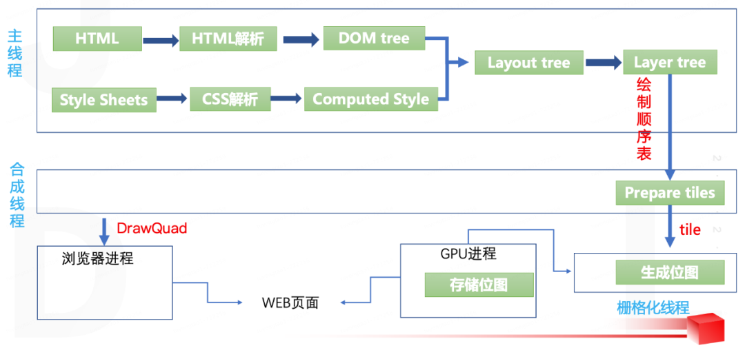 JavaScript:浏览器解析和执行 JavaScript 代码,可能会修改 DOM 树或 CSSOM 树。