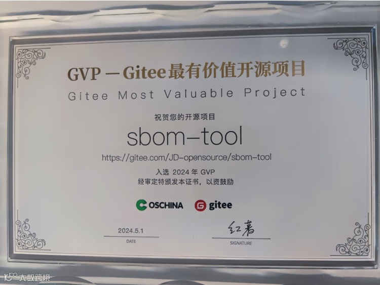 GVP(Gitee Most Valuable Project)最有价值开源项目计划,是Gitee综合评定出的优秀开源项目的展示平台,代表了开源项目的技术创新和高质量能力与水平。京东云星光SBOM-TOOL荣获此称号,不仅是对京东云星光产品实力的肯定,更是对京东在开源治理领域所做出的杰出贡献的认可。