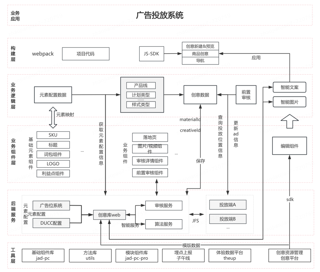 为了解决第一个维护成本这个难题,我当时也是主动同产品、后端同学进行了多轮方案沟通,最终决定采用“配置化+组件化”的方案,这次升级改造的前端就是我自己,我把原来根据每一种广告样式定制的代码架构,升级为通过获取广告位系统配置的样式及样式下的元素,动态进行页面渲染。最终达到的效果是,大多数情况下,新增一个广告样式,只需要产品在广告位系统配置一下,整个创意中心都是不需要进行代码开发和上线的。