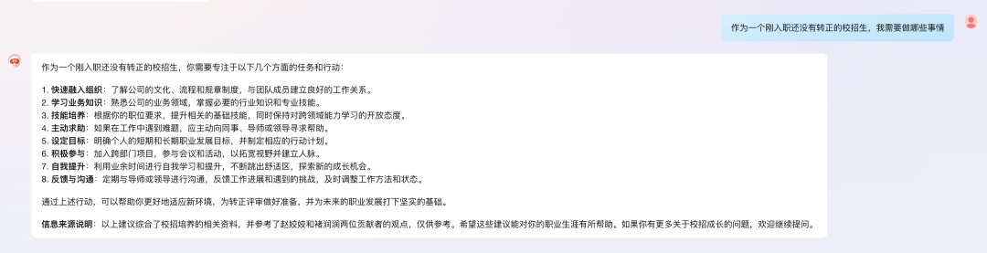 我主要组织成员进行业务开发问题、校招培养,AIGC等主题的探讨学习。并且目前也已经取得一些成果,通过AI Agent的方案沉淀校招成长中的问题及解决方案,能够更好的帮助校招生解决遇到的一些问题。