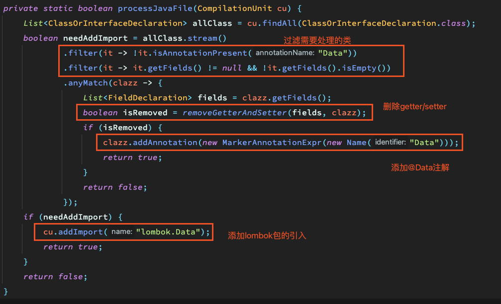 回过头来看,如果我们要写一个工具,对整个代码工程所有类进行全量扫描,并且使用lombok来替换其中的“没有特殊逻辑”的getter和setter,需要哪些步骤。