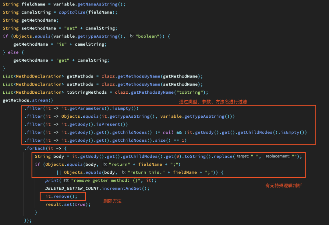 这里简单粗暴了一些,直接使用equals判断方法体,其实javaParser提供了更完善的api来分析语义。
