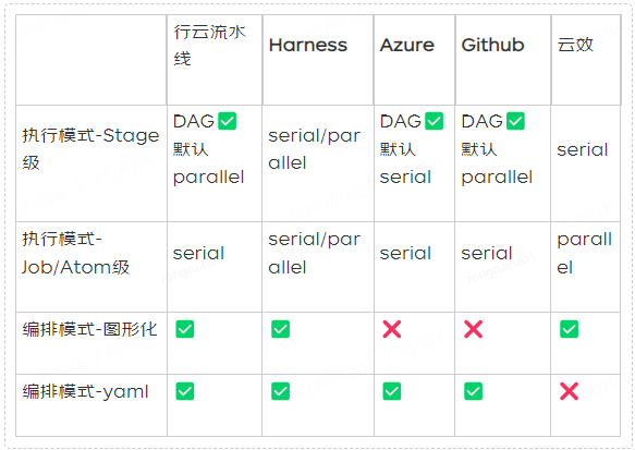 对比Harness,Azure,Github Actions等平台在不同pipeline维度的模型策略