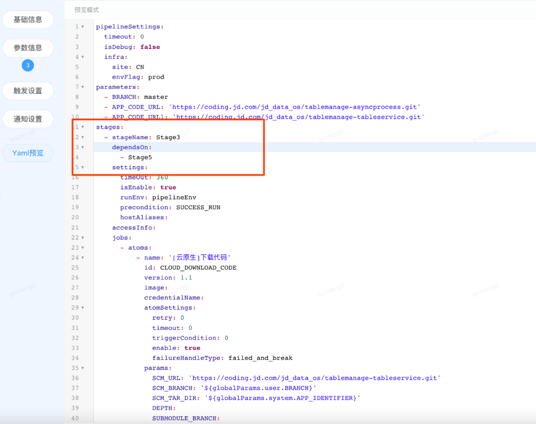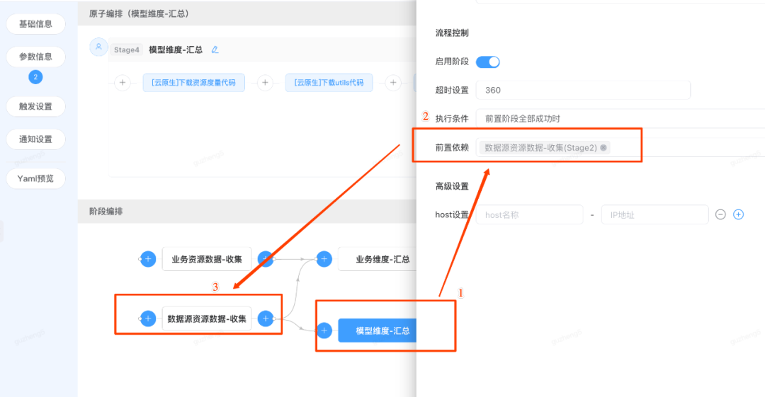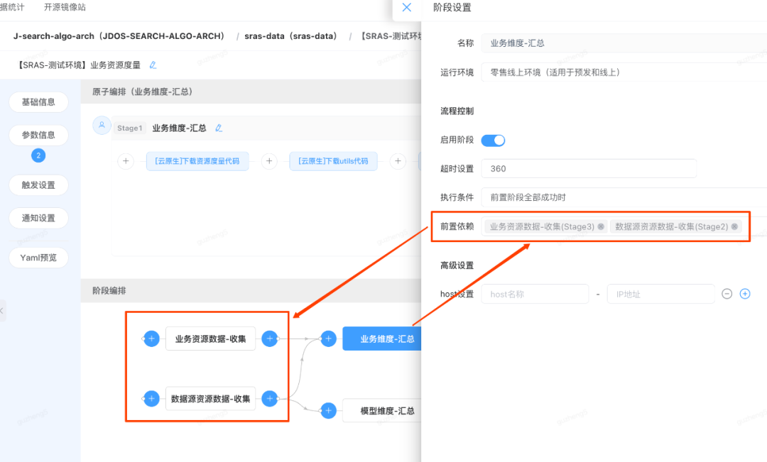 阶段级(stage):使用“DAG依赖声明方式”描述流程,这也是业界主流的灵活编排方式,适用于编排比较复杂的流程