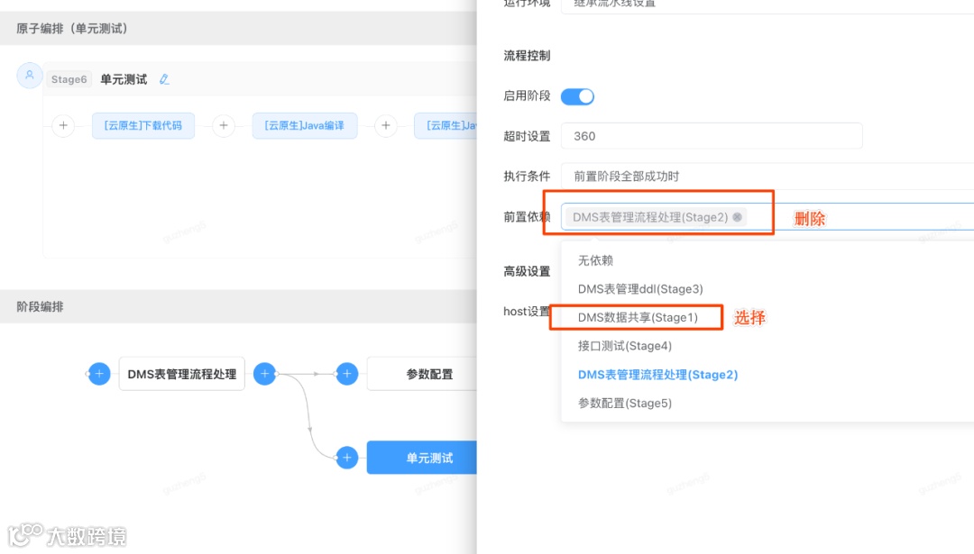 当调整“单元测试阶段”到DMS数据共享阶段之后执行