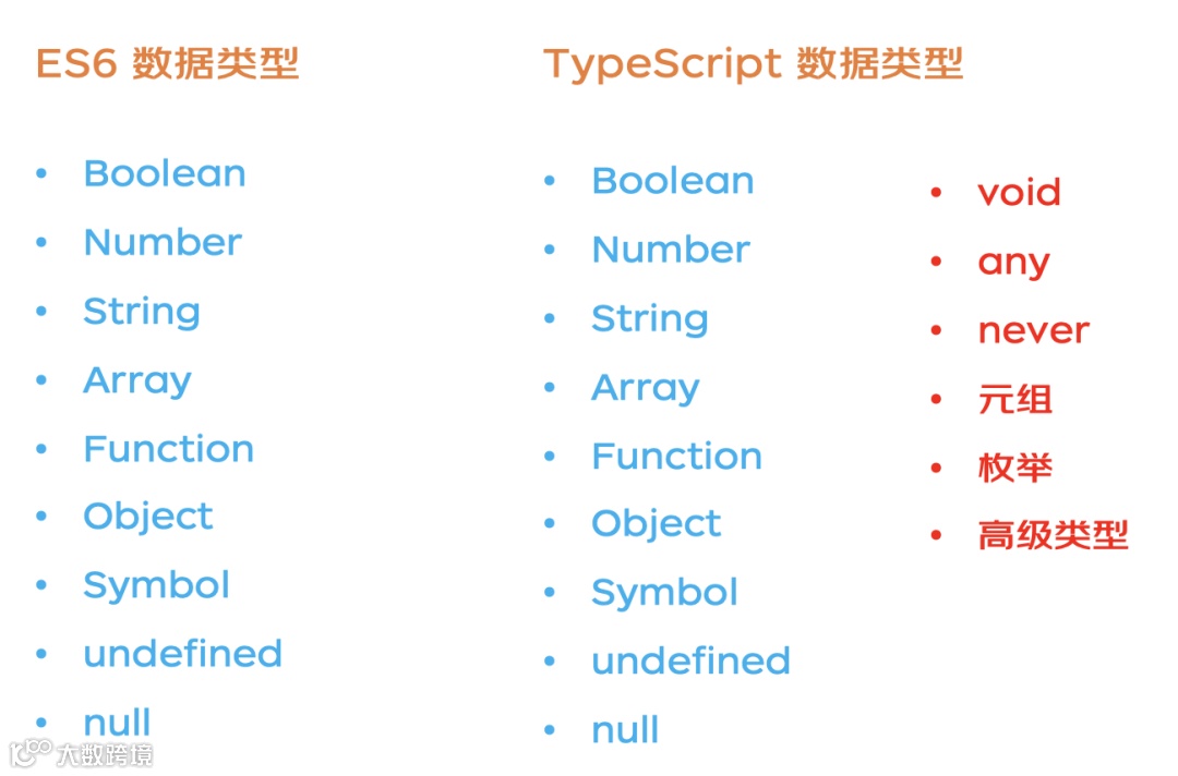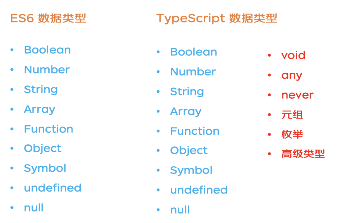 图中蓝色的为基本类型,红色为 TypeScript 支持的特殊类型