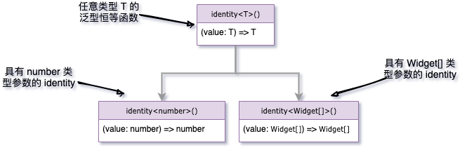 function identity<T>(value: T): T ( // 有一个类型参数 T 的泛型恒等函数return value)// 可以使用 identity 代替 doNothing 和 pluckAll